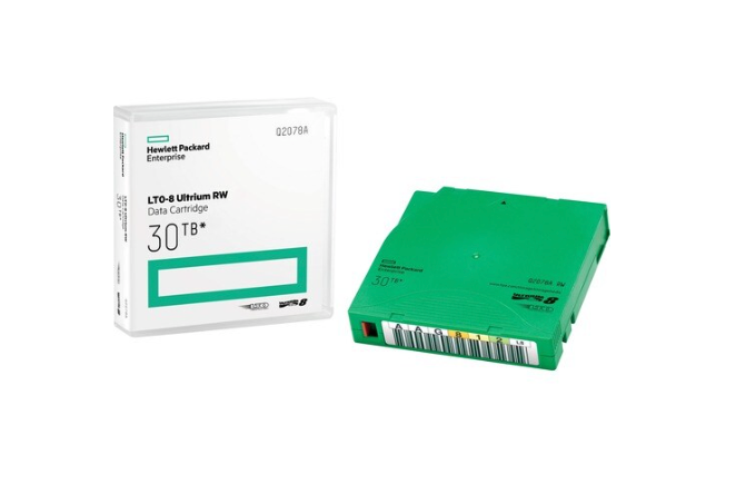 HPE LTO-8 Ultrium can write or read data at a blistering 2.7 TB/hour, storing, encrypting and protecting up to 30 TB on a single cartridge, making it ideal for large-scale, 24 x 7, mission-critical IT environments (assumes 2.5:1 compression).